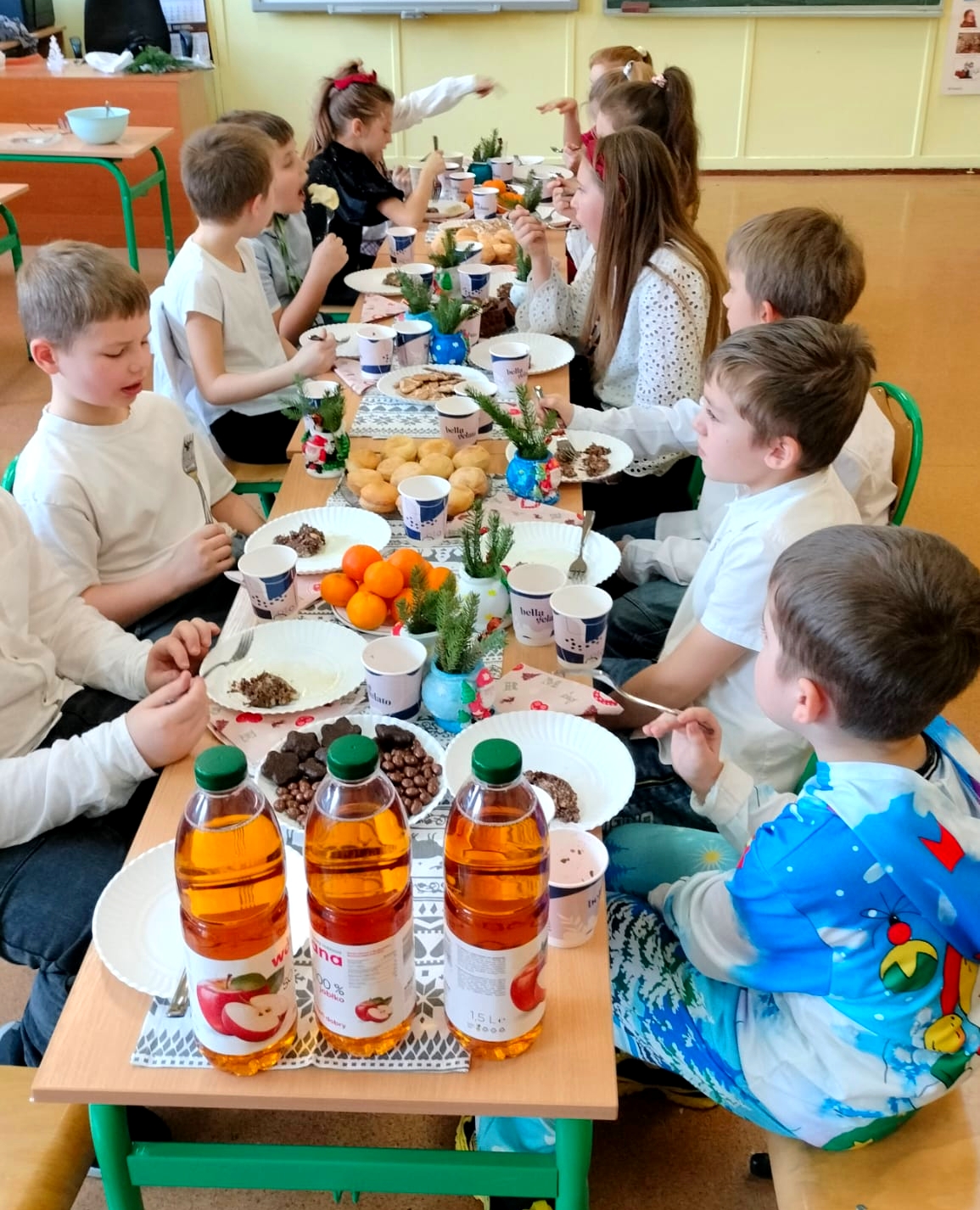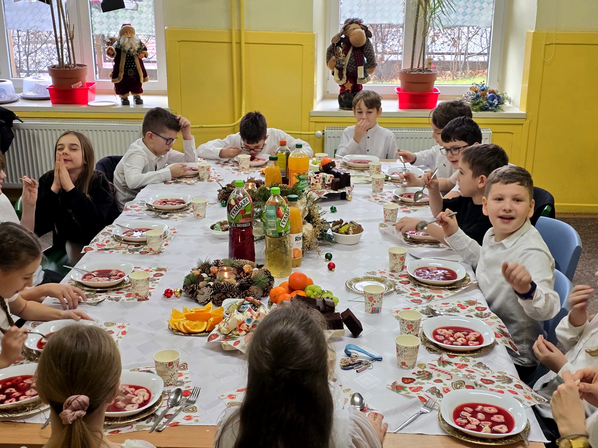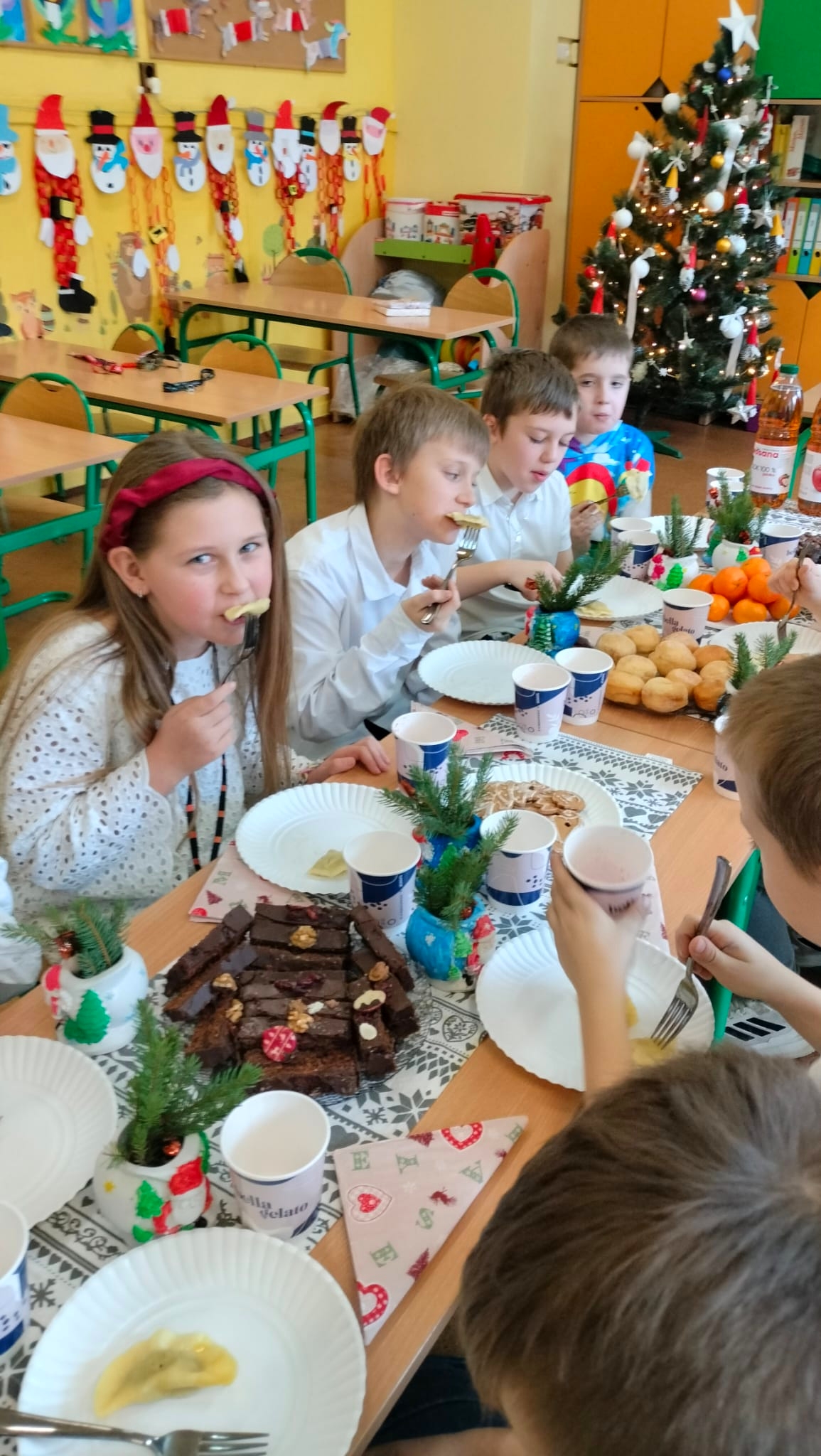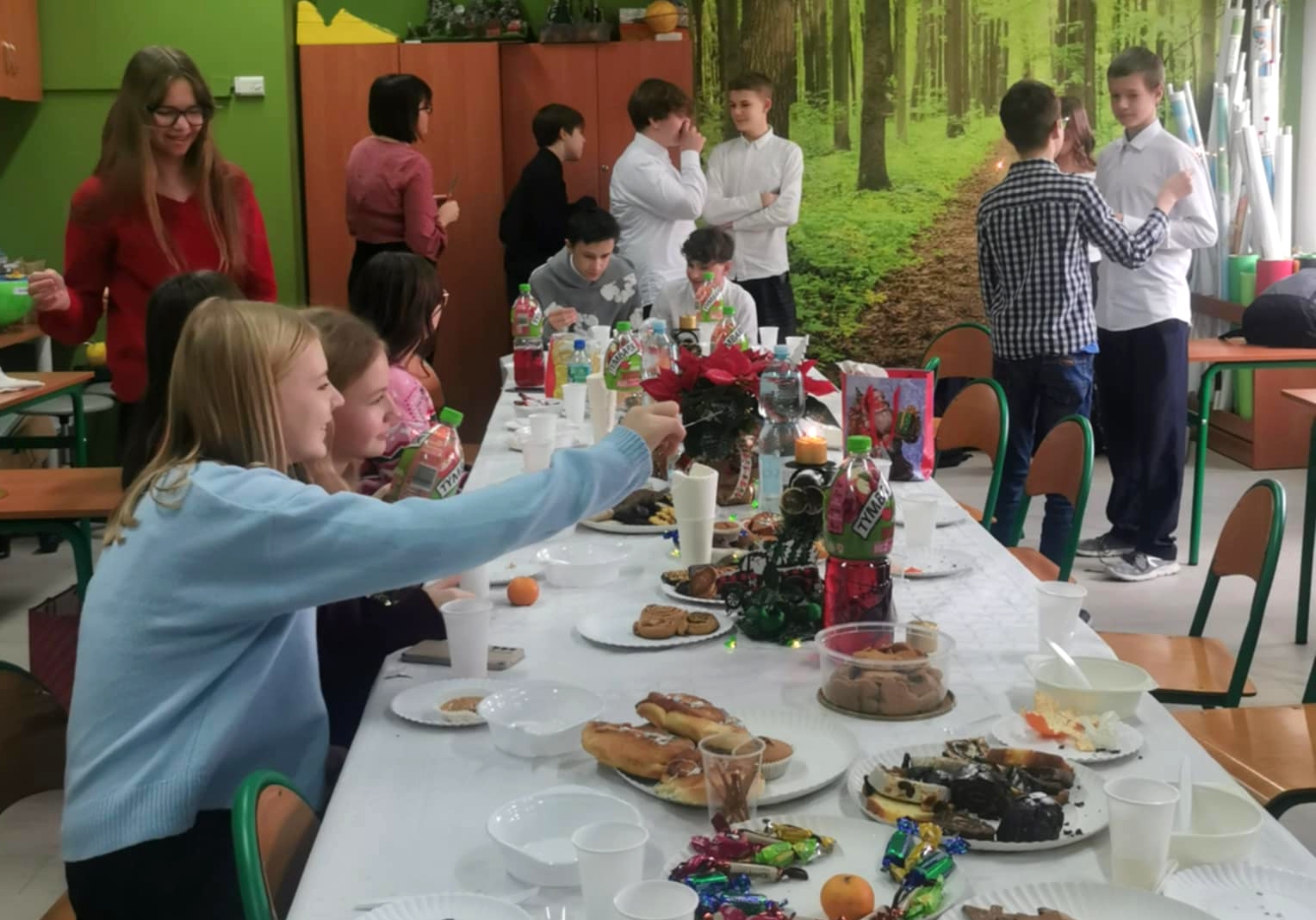 Klasowe wigilie to piękna tradycja, którą od lat podtrzymujemy – pełna ciepła i życzliwości. Był czas na składanie życzeń, dzielenie się opłatkiem oraz bycie razem, co sprzyja integracji uczniów i budowaniu wzajemnych relacji. Magia świąt była obecna w każdej klasie – w dekoracjach, kolędach i atmosferze, która na długo pozostanie w naszej pamięci.