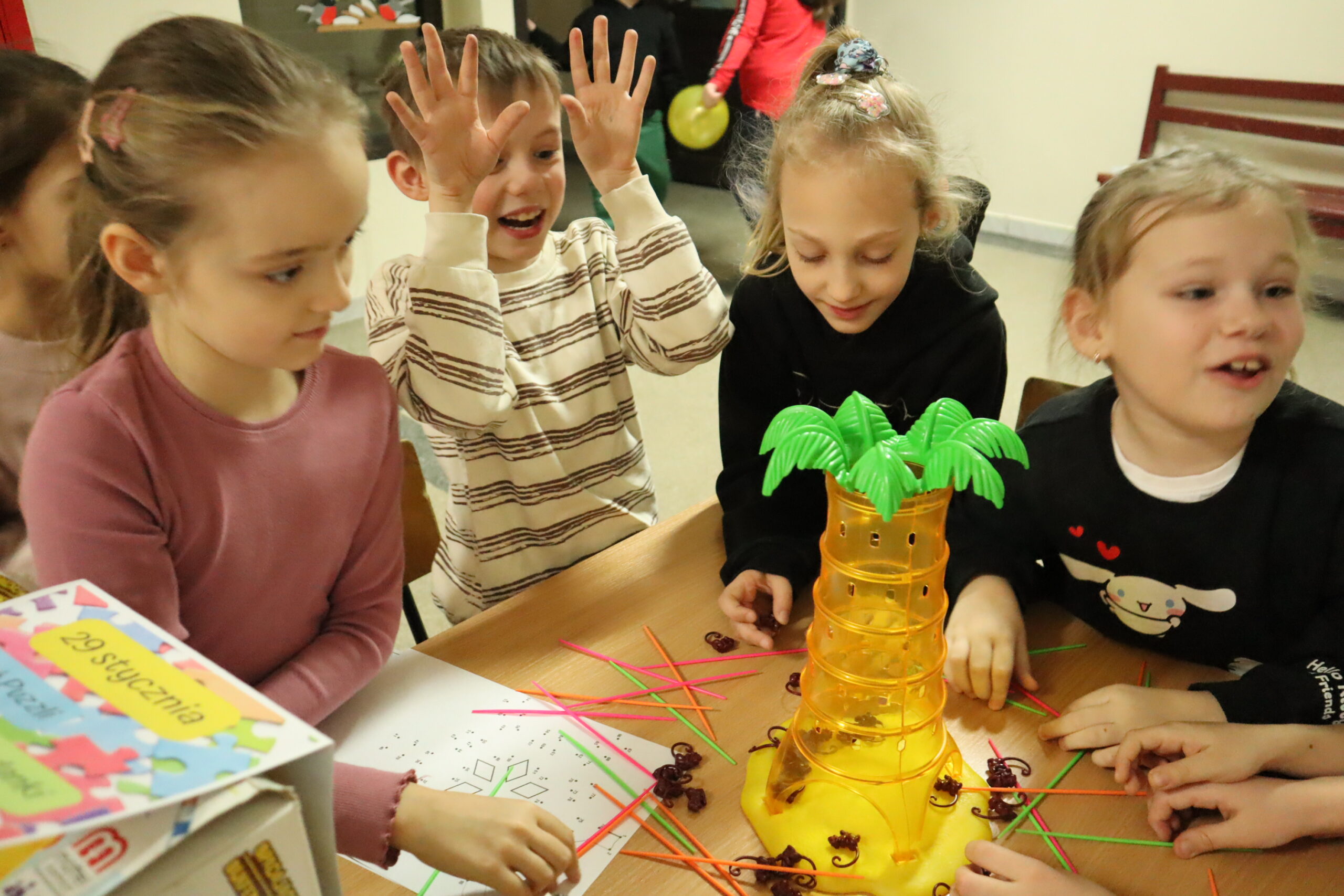 W tym dniu nasi uczniowie grali w ulubione gry na długich przerwach oraz w świetlicy szkolnej. Dawno nie widzieliśmy ich tak rozentuzjazmowanych i radosnych. Była to dla nich nie tylko świetna zabawa w towarzystwie kolegów i koleżanek z klasy, ale też wspaniała lekcja m.in. planowania, przewidywania, spostrzegawczości, zręczności, liczenia i zasad fair play. Celebrowanie takiego święta to również doskonała okazja, aby zatrzymać się na chwilę i wciągnąć się w świat intelektualnych wyzwań nie myśląc wtedy o zaglądaniu do telefonu.