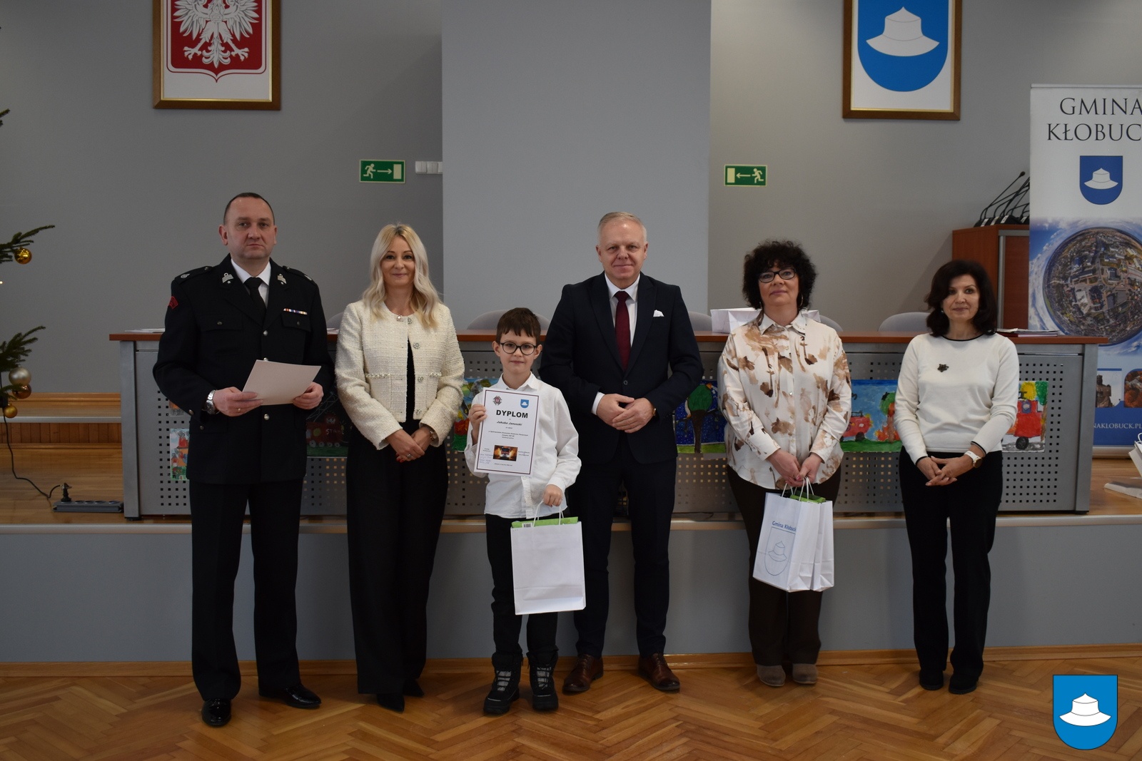 8 stycznia 2026r. w Urzędzie Miejskim w Kłobucku laureaci Ogólnopolskiego Strażackiego Konkursu Plastycznego Zarządu OSP RP – eliminacji gminnych odebrali nagrody z rąk Burmistrza Kłobucka Jerzego Zakrzewskiego oraz członków Komisji.