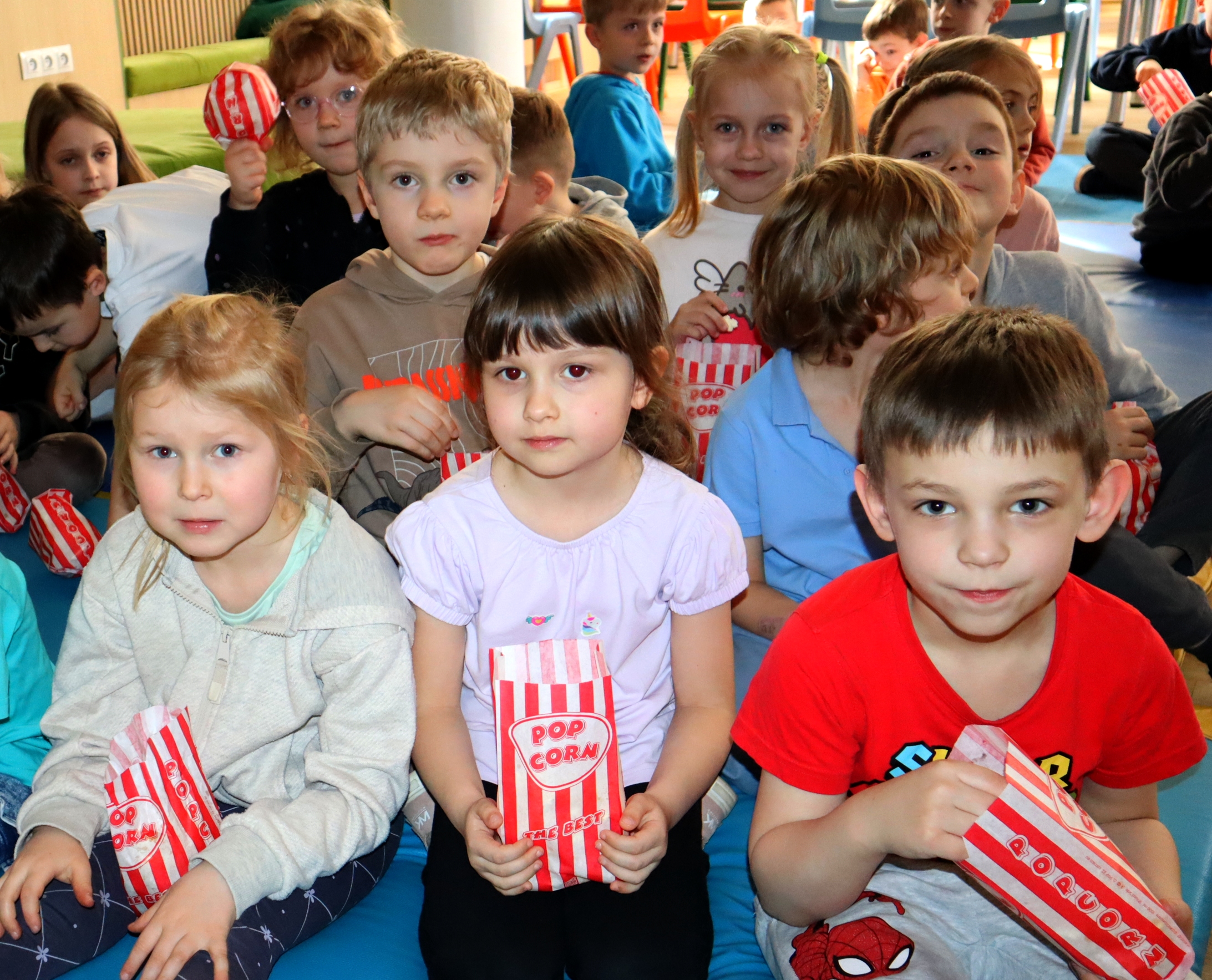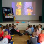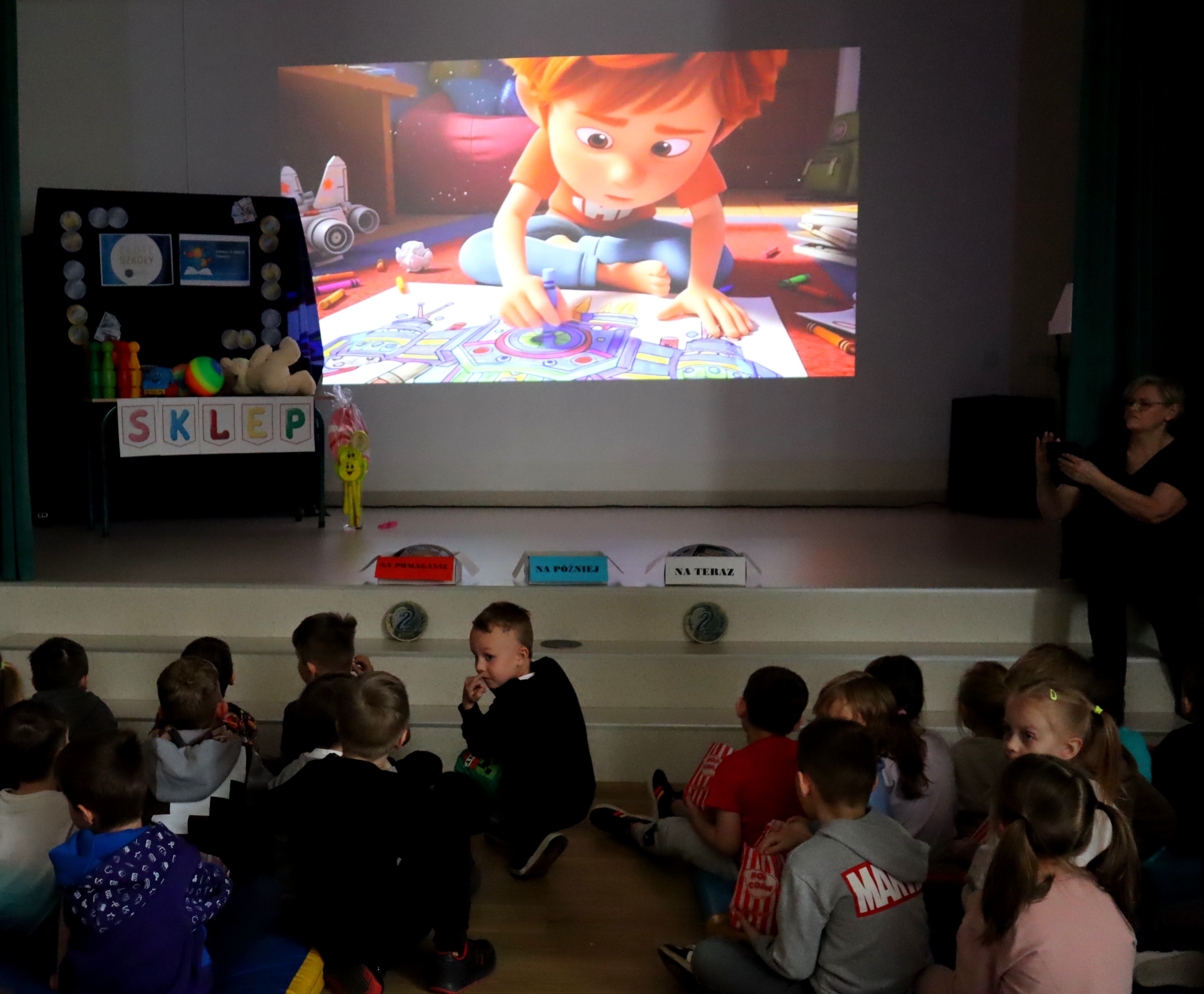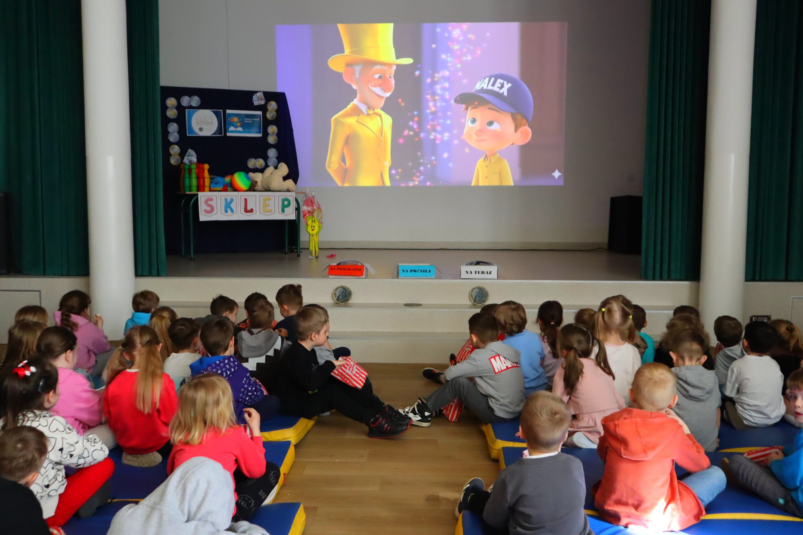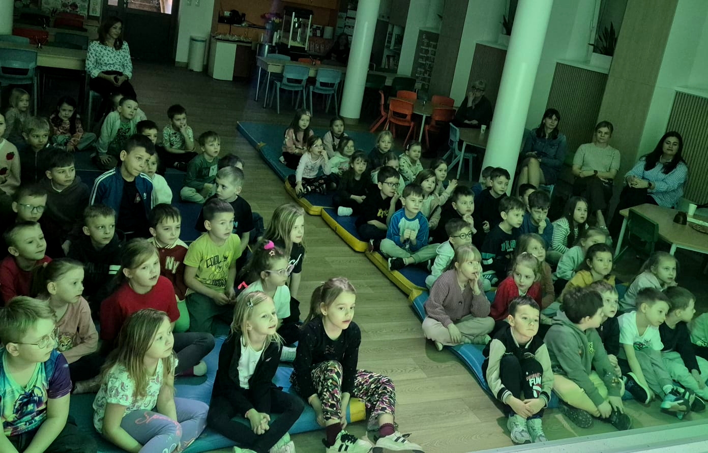 Po przedstawieniu przedstawienia dzieci odwiedziły nasze Radio SPDwójka, gdzie dowiedziały się, jak działa szkolna rozgłośnia i jaką pełni funkcję w życiu szkoły. Nie zabrakło również prawdziwych emocji – przedszkolaki uczestniczyły w nagrywaniu piosenki o oszczędzaniu, a następnie wzięły udział w seansie w naszym szkolnym kinie, gdzie przy lemoniadzie i popcornie obejrzały film poświęcony mądremu odkładaniu pieniędzy.