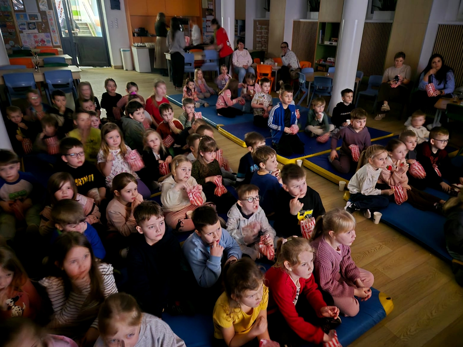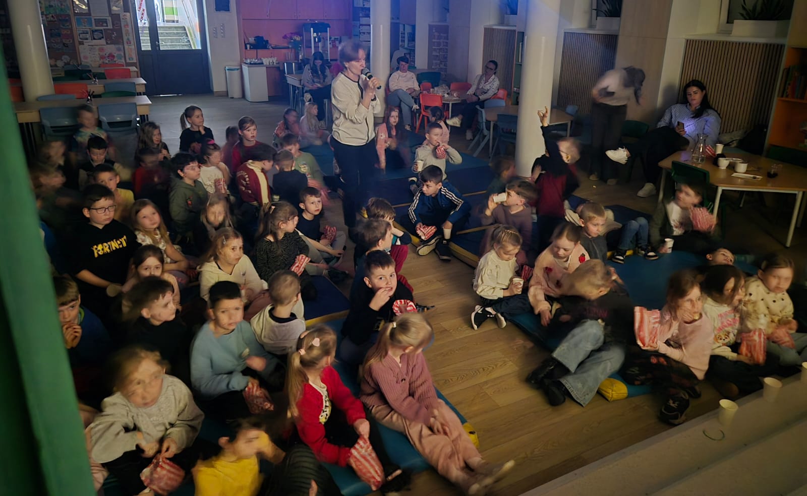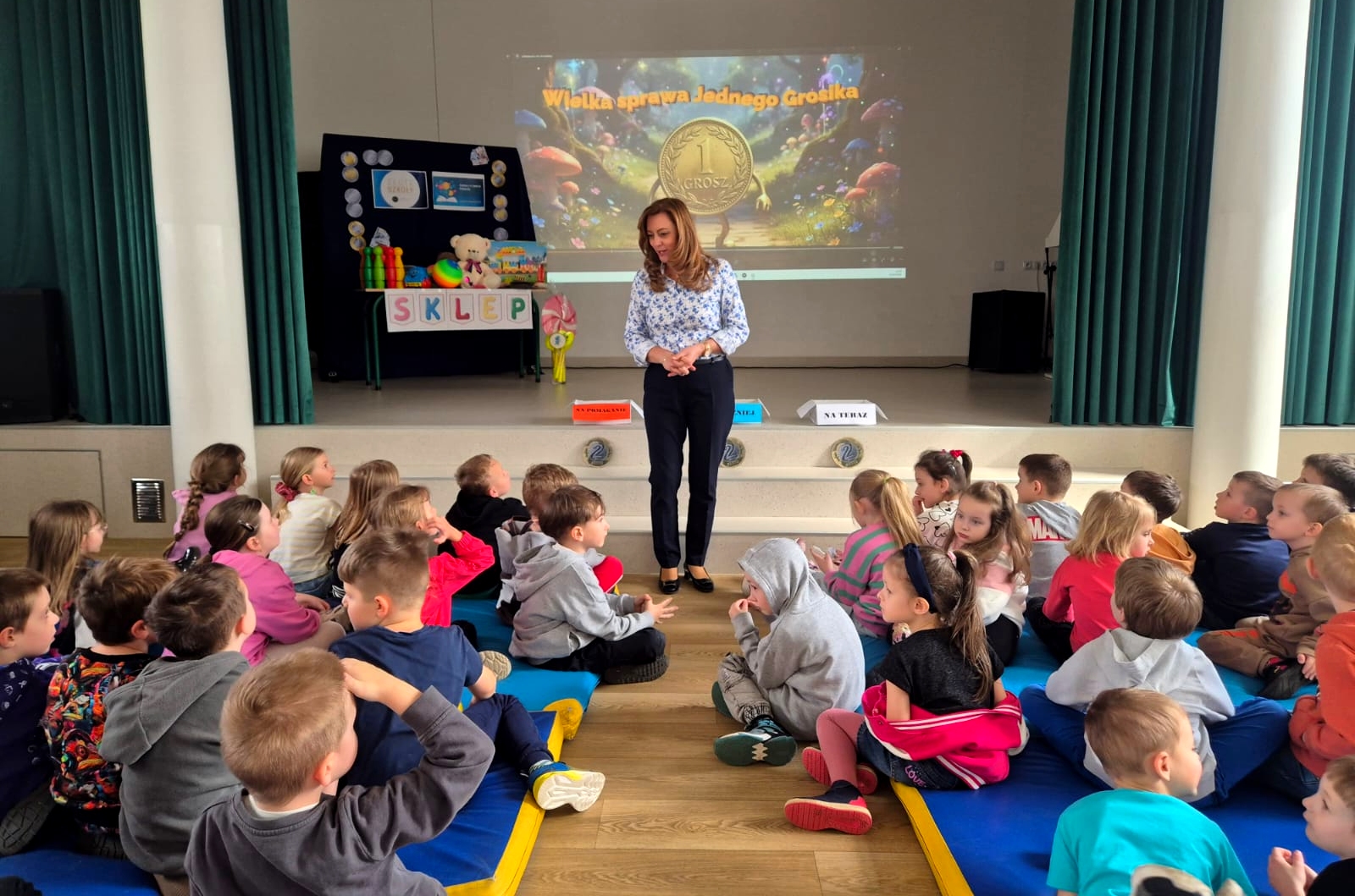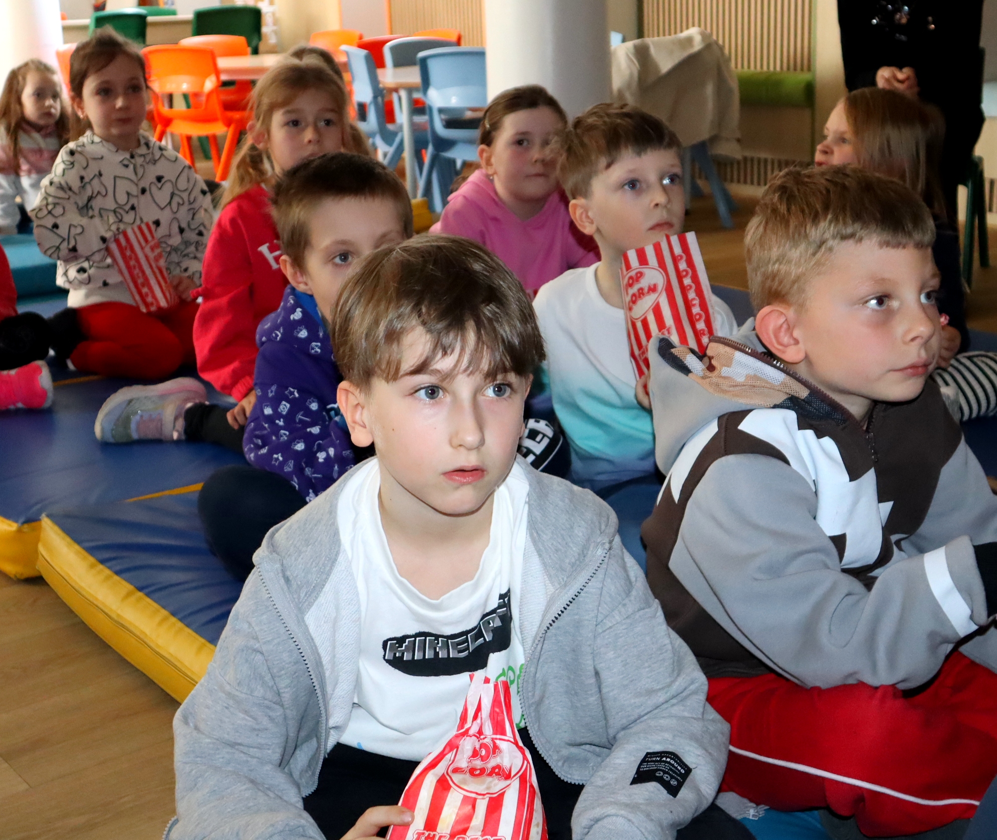 Po przedstawieniu przedstawienia dzieci odwiedziły nasze Radio SPDwójka, gdzie dowiedziały się, jak działa szkolna rozgłośnia i jaką pełni funkcję w życiu szkoły. Nie zabrakło również prawdziwych emocji – przedszkolaki uczestniczyły w nagrywaniu piosenki o oszczędzaniu, a następnie wzięły udział w seansie w naszym szkolnym kinie, gdzie przy lemoniadzie i popcornie obejrzały film poświęcony mądremu odkładaniu pieniędzy.