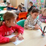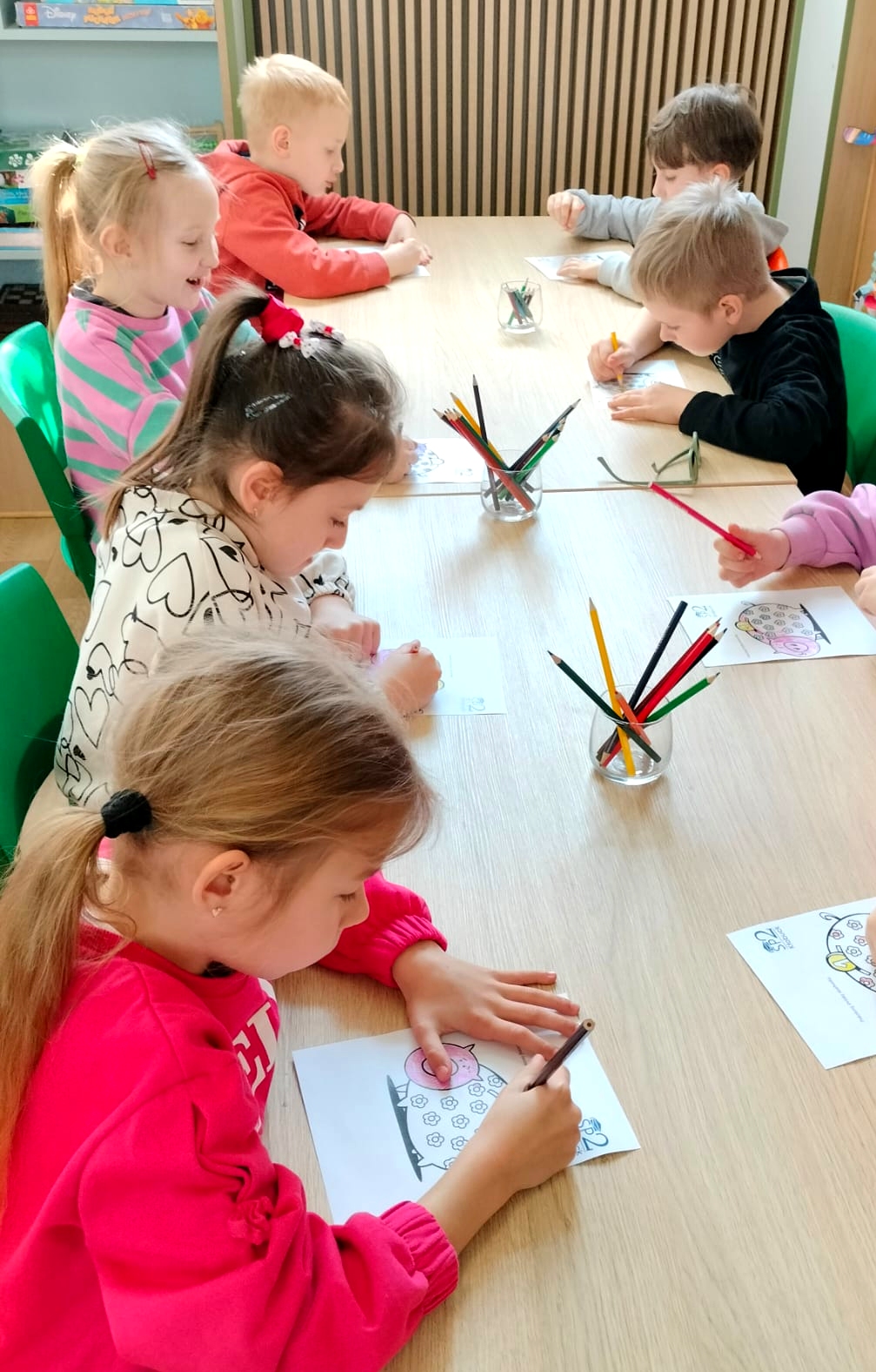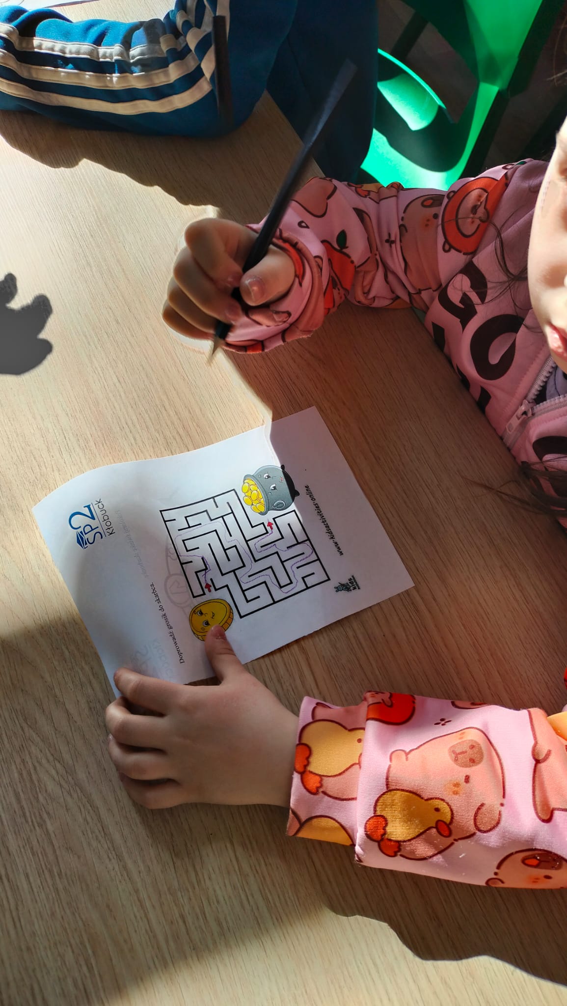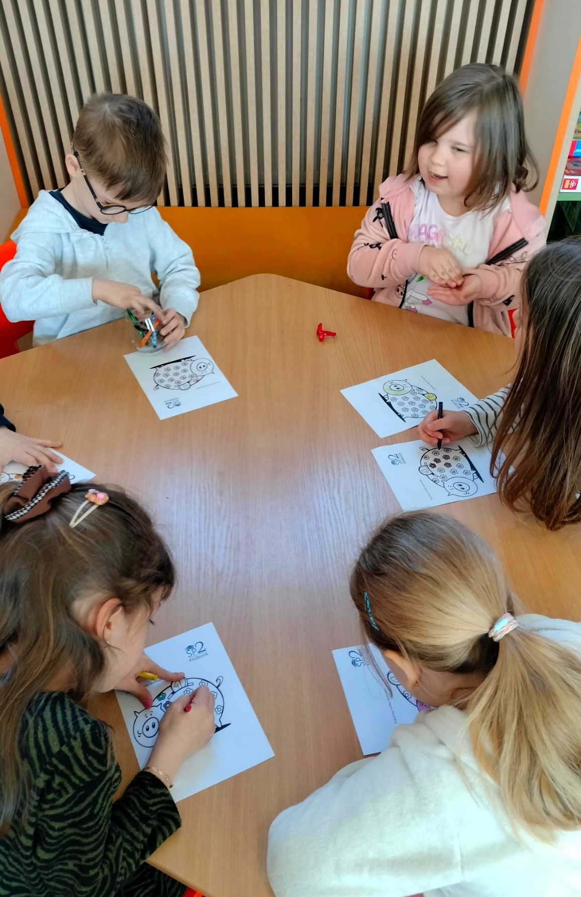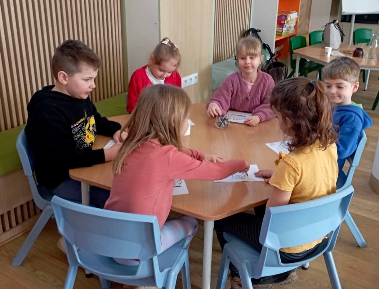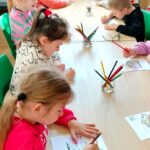 Na zakończenie spotkania dzieci kolorowały skarbonki oraz rozwiązywały tematyczny labirynt, utrwalając wiedzę o tym, że nawet małe monety mogą pomóc spełniać wielkie marzenia.