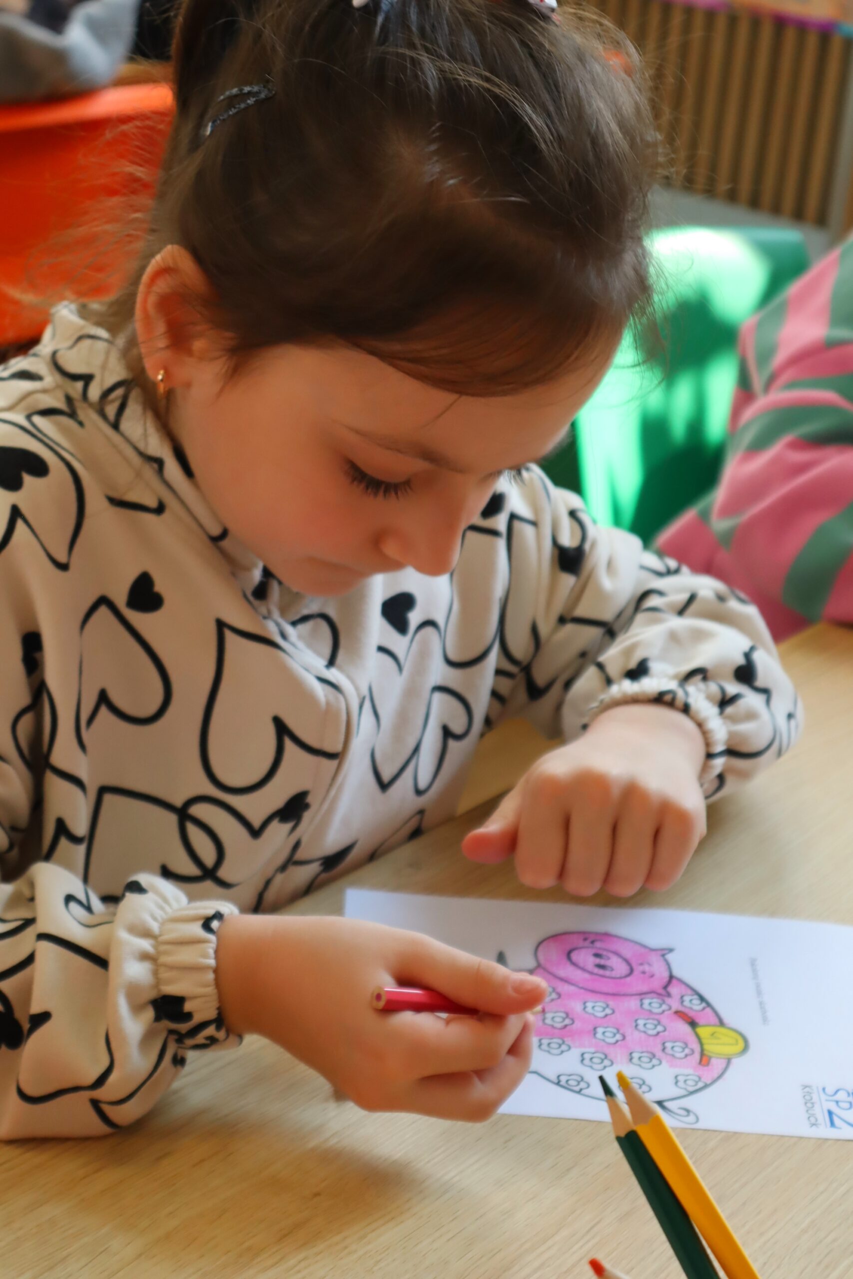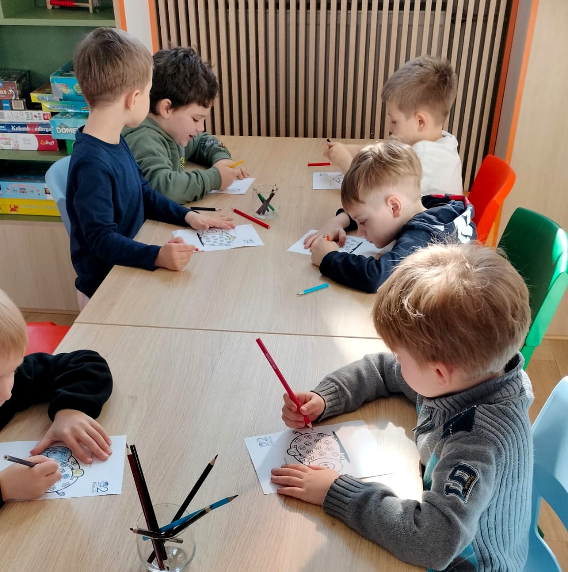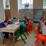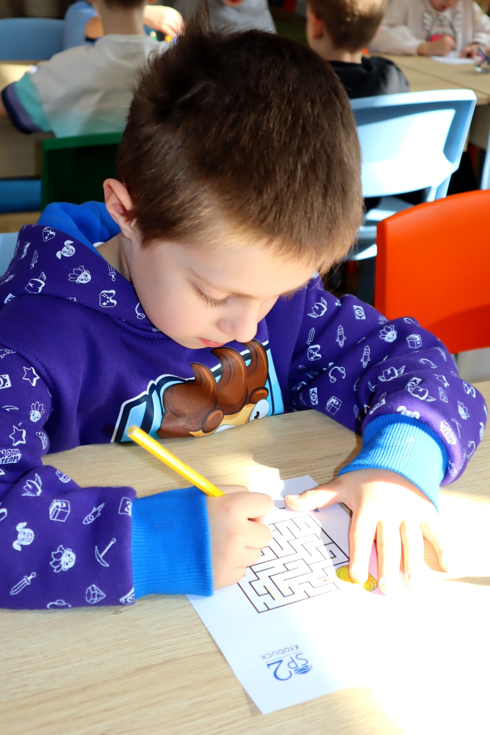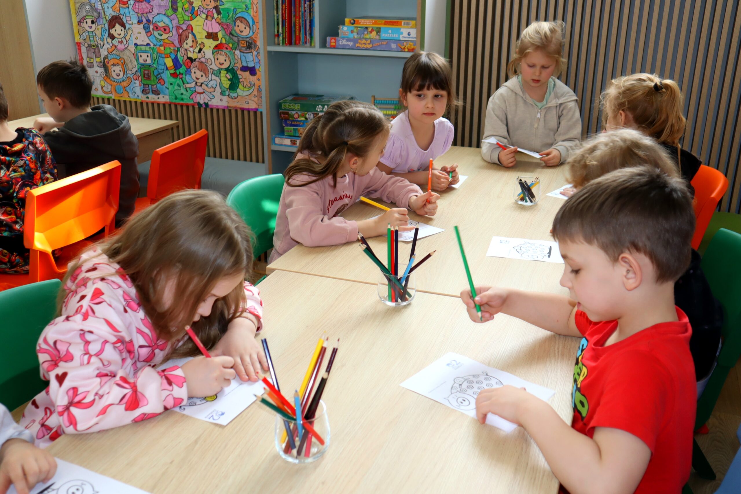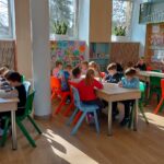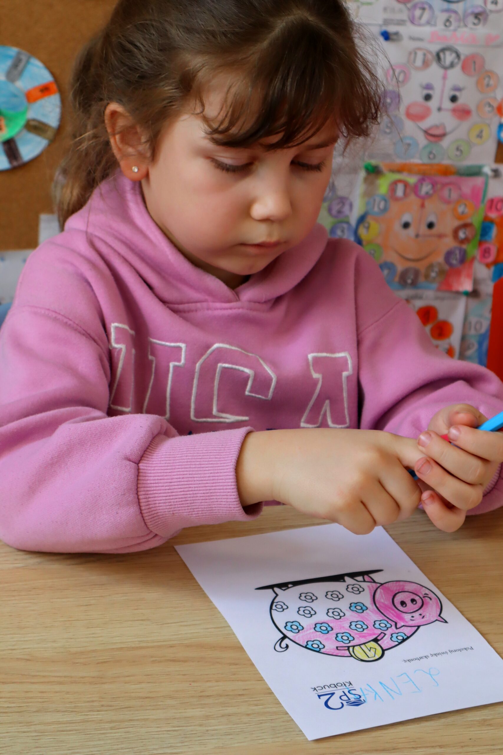 Na zakończenie spotkania dzieci kolorowały skarbonki oraz rozwiązywały tematyczny labirynt, utrwalając wiedzę o tym, że nawet małe monety mogą pomóc spełniać wielkie marzenia.