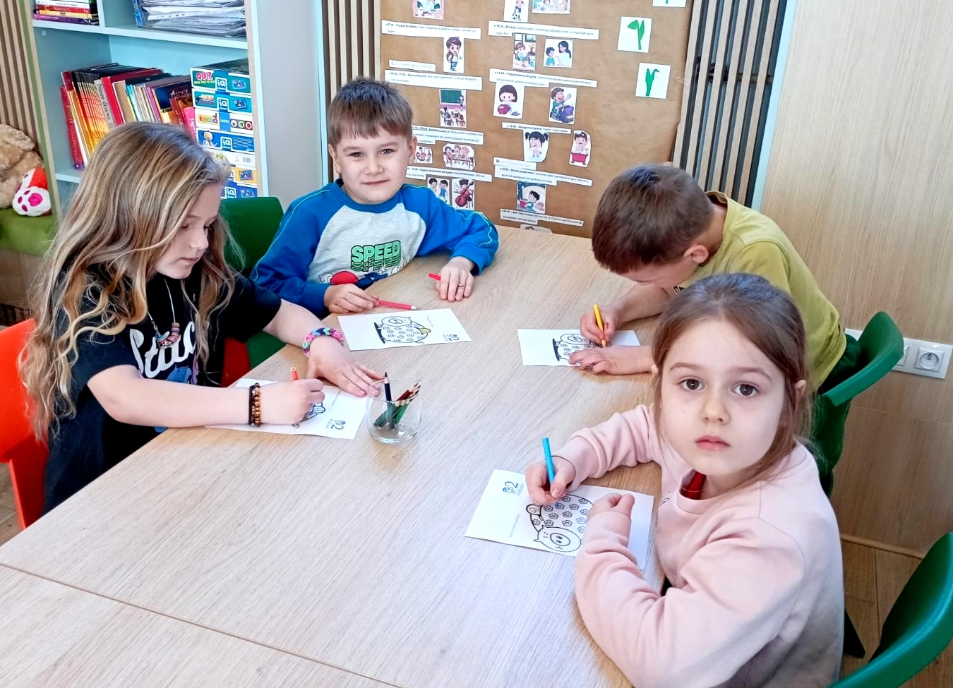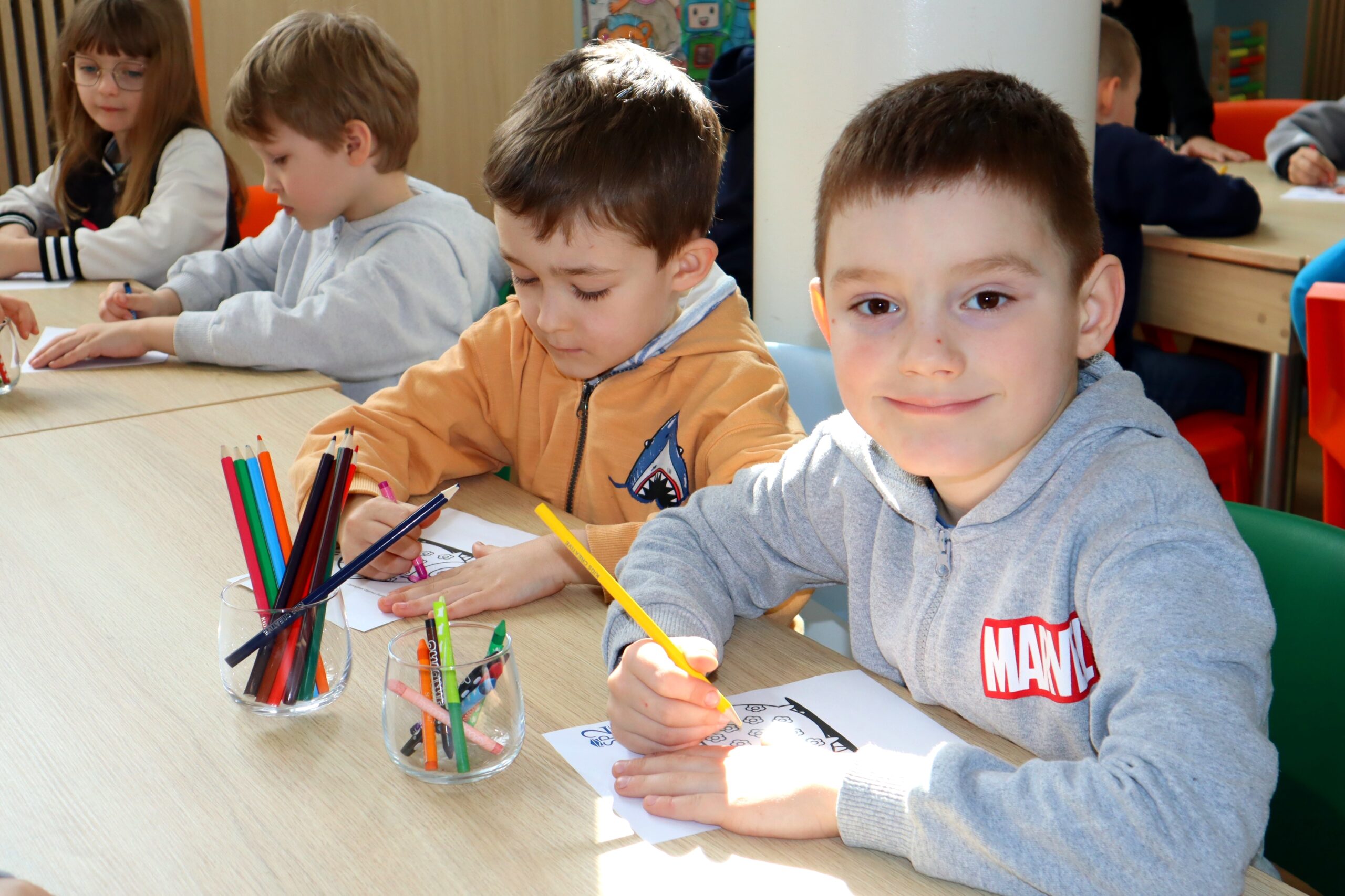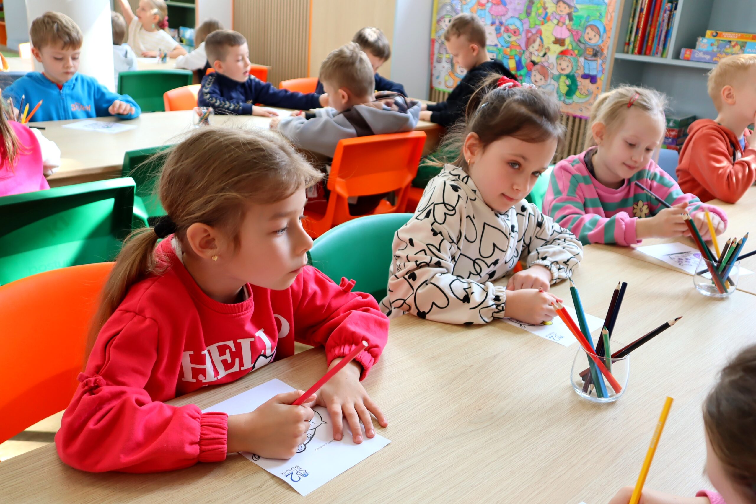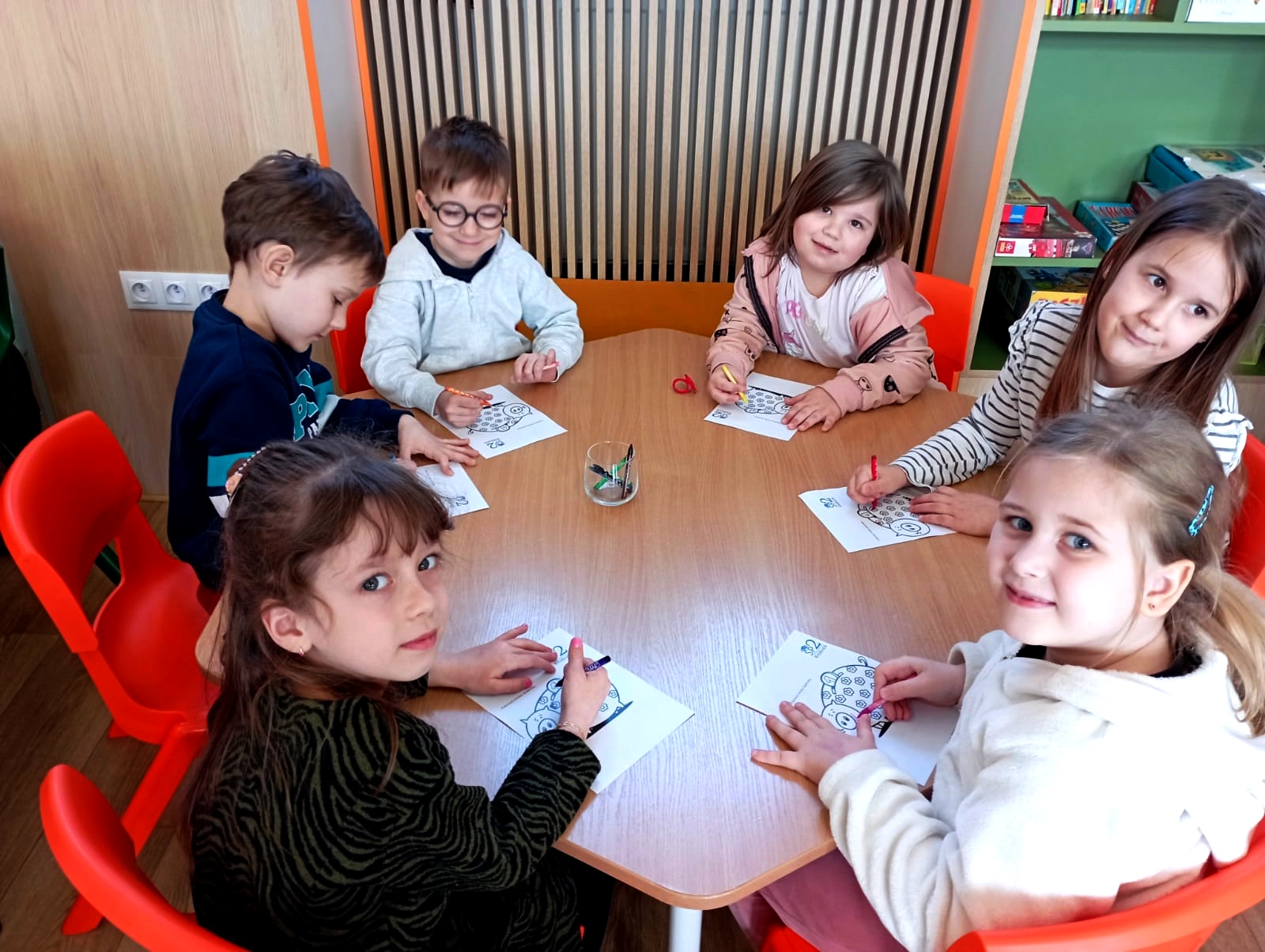 Na zakończenie spotkania dzieci kolorowały skarbonki oraz rozwiązywały tematyczny labirynt, utrwalając wiedzę o tym, że nawet małe monety mogą pomóc spełniać wielkie marzenia.