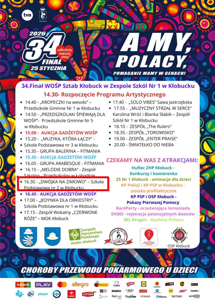 CZYTAJ WIĘCEJPodczas 34. Finału Wielkiej Orkiestry Świątecznej Pomocy nasi uczniowie i nauczyciele wspólnie kwestowali, pokazując niesamowite zaangażowanie, energię i pasję do pomagania. Z uśmiechem, otwartymi sercami i ogromną determinacją pokazywali, że pomaganie ma prawdziwą moc.Wyjątkowym momentem Finału był również występ naszych uczniów z Zespołu Wokalnego, którzy swoim talentem, radością i muzyczną […]