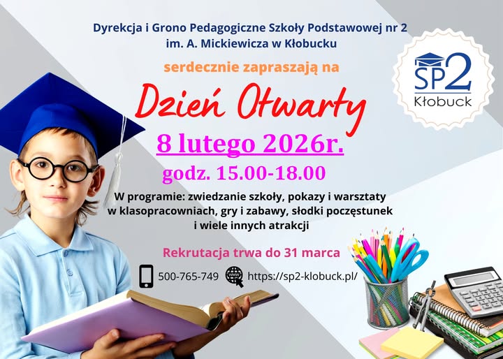 CZYTAJ WIĘCEJSzkoła Podstawowa nr 2 im. Adama Mickiewicza w Kłobucku to szkoła z bogatą historią. Posiadamy wyspecjalizowaną kadrę pedagogiczną.