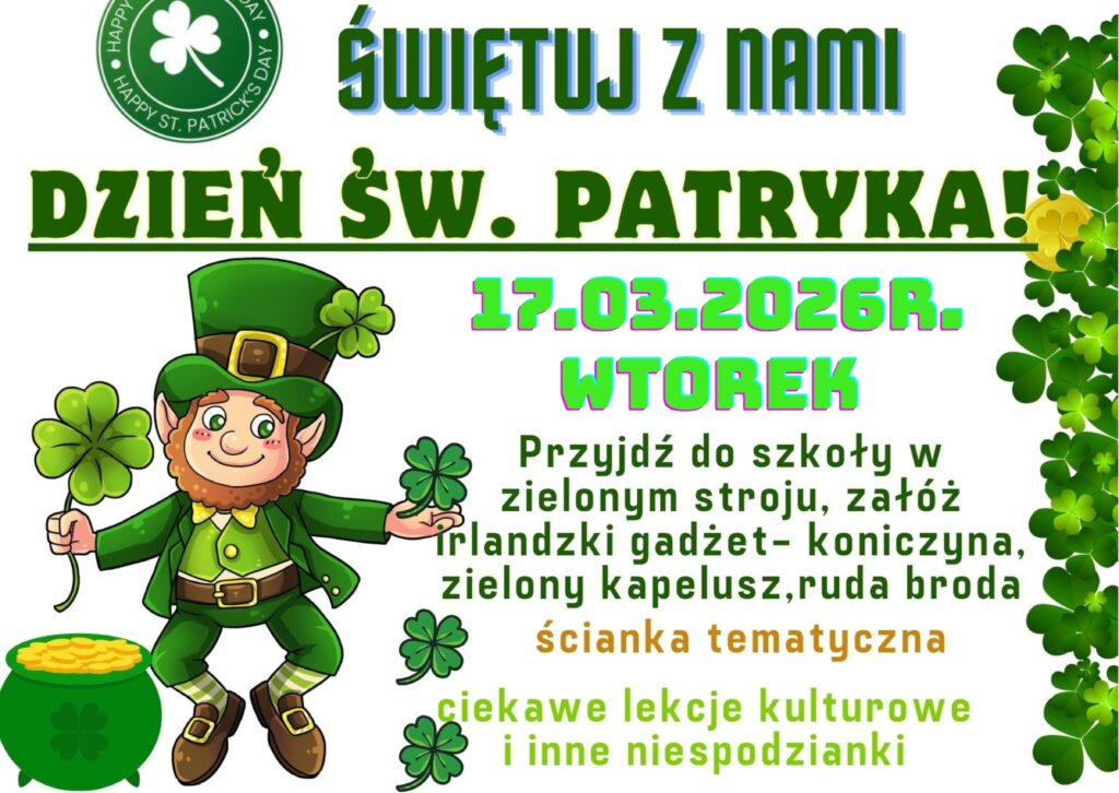 Nauka języków obcych to coś więcej niż tylko gramatyka i słownictwo — to także odkrywanie fascynujących kultur i tradycji krajów anglojęzycznych.        We wtorek, 17 marca, z ogromnym entuzjazmem dołączyliśmy do światowych obchodów Dnia Świętego Patryka! ✨Podczas lekcji języka angielskiego uczniowie poznawali historię i zwyczaje związane z tym wyjątkowym […]